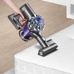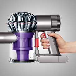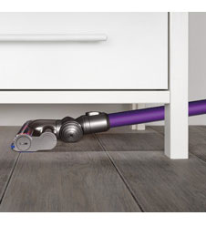 DC62’s floor tool has been engineered to be lighter and improve pick-up. A self-tightening mechanism keeps the brush bar stable and a dust capture channel prevents dirt from escaping back to the floor, increasing pick-up. The new configuration of carbon fibre filaments and nylon bristle strips removes dust and dirt across all floors.
