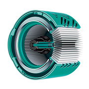 With whole machine HEPA filtration, the Dyson V6 Mattress vacuum captures and retains dust using patented 2 Tier Radial™ cyclones. 15 cyclones, arranged across two tiers, generate powerful centrifugal forces to spin dust and dirt out of the airflow. The post motor filter captures over 99.97% of particles as small as 0.3 microns, including allergens and bacteria. And because the entire system is engineered to be sealed, the air that leaves the machine is cleaner than the air you breathe.